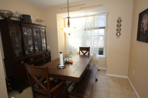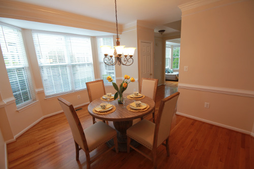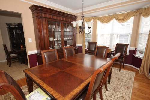 Staging is not all about furniture. Nothing touches potential buyer emotions as effectively as the smell of fresh carpet and freshly painted walls. Many of our sellers like bold wall colors, yet it is often the first criticism we hear from potential buyers. If a buyer can not see themselves living in a home with “those colors”, they are far less likely to make an offer on it. In these examples, the owner had both the master bedroom and dining room professionally painted with dark colors. After repainting them with a more neutral color and staging the rooms with less furniture, the results were breathtaking.